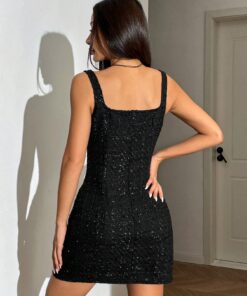 SHEIN EZwear Solid Color Open Slit Casual Versatile Sleeveless Mini Dress